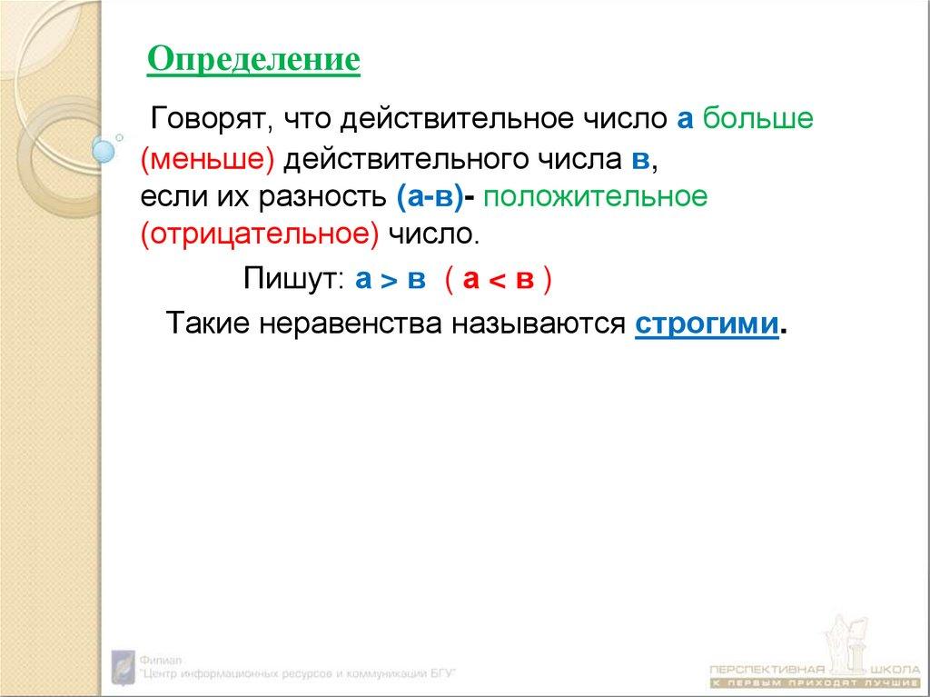 Говорят, что действительное число а больше(меньше) действительного числа в,