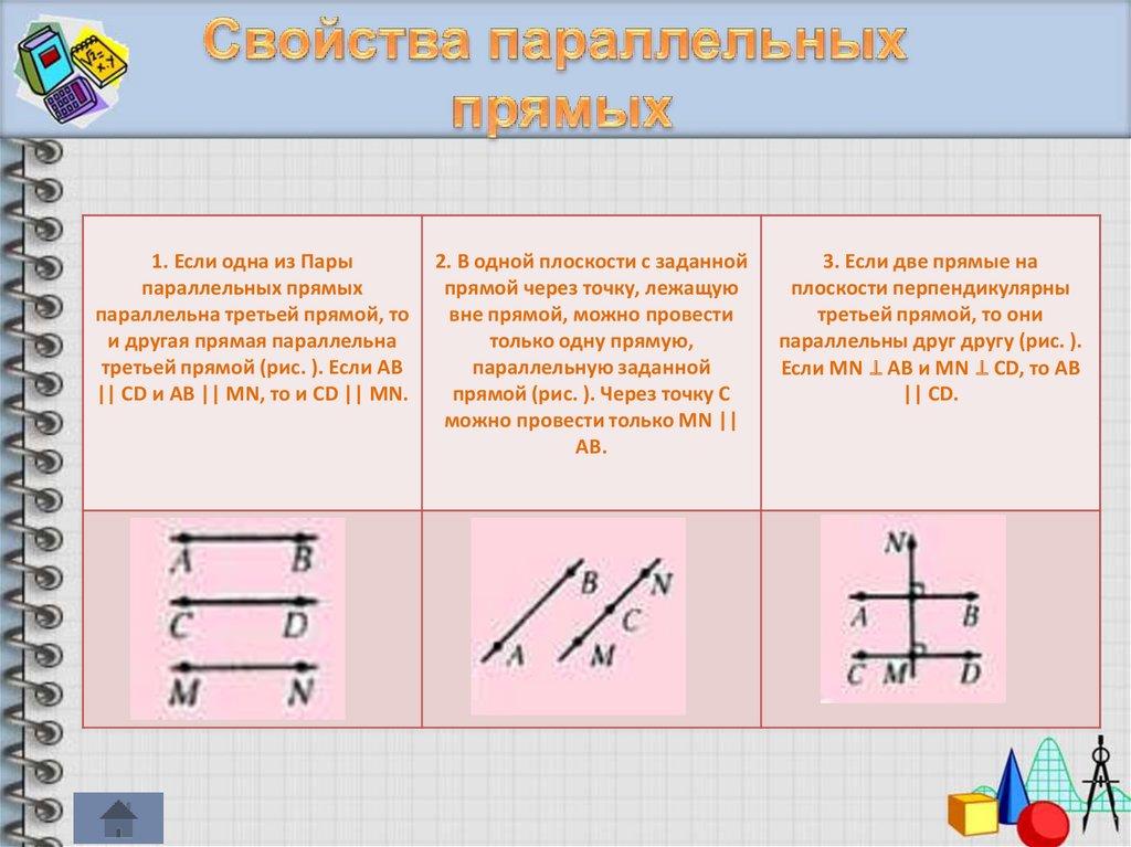 Параллельные прямые. Их признаки и свойства