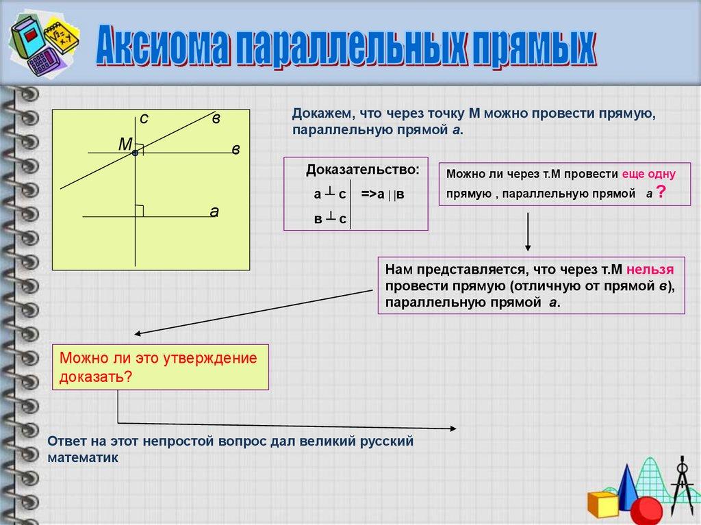 Тогда через т.М проходят две прямые а