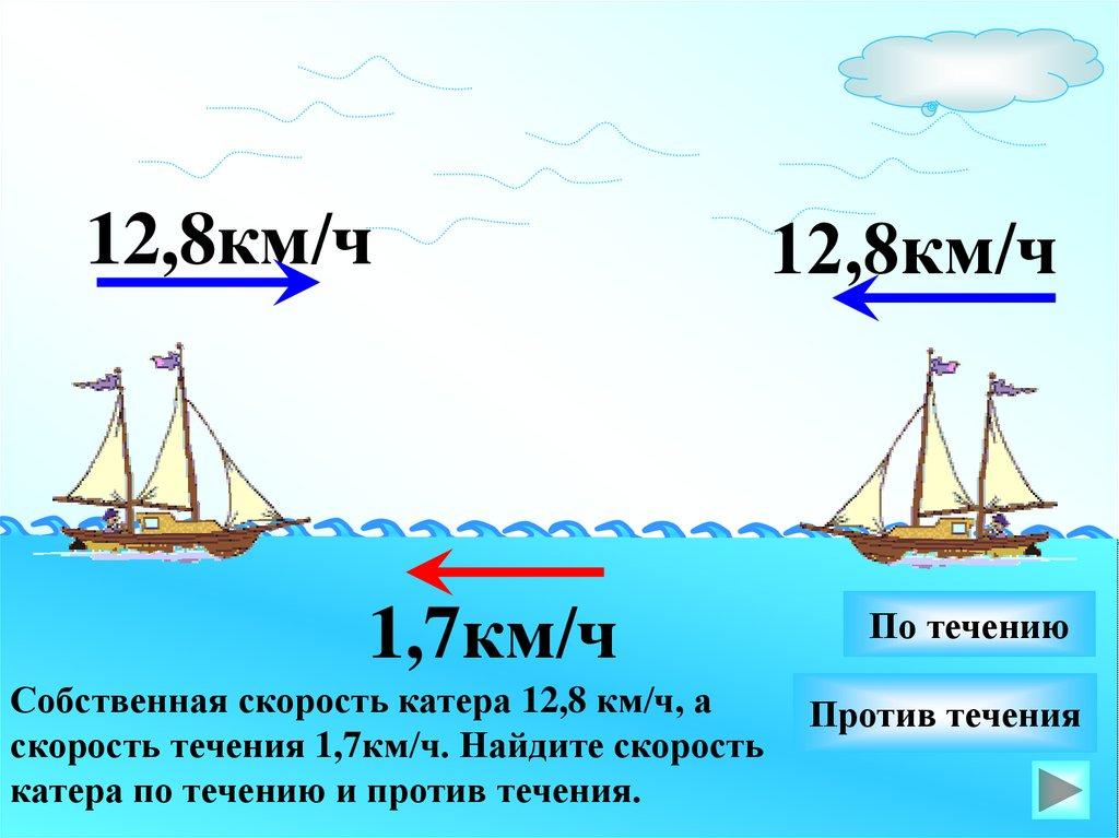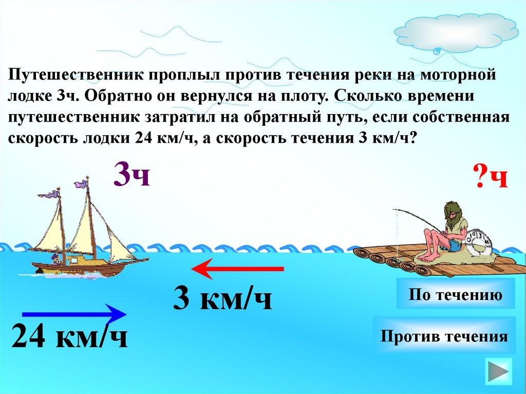 скорость лодки 24 км/ч, а скорость течения 3 км/ч?