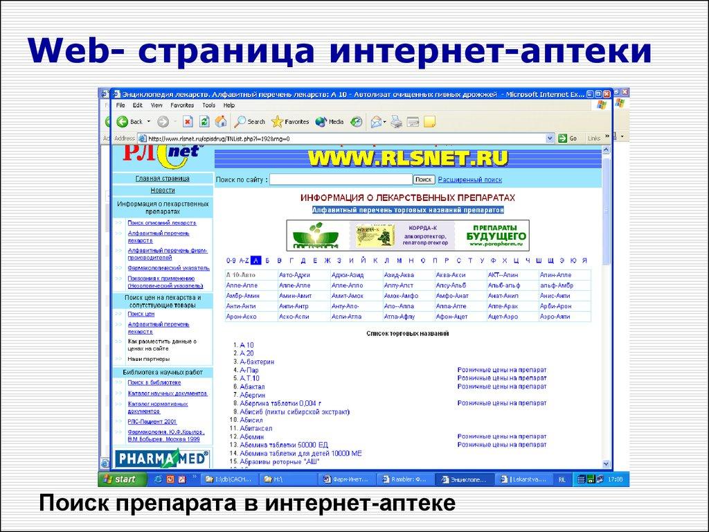 Web- страница интернет-аптекиПоиск препарата в интернет-аптеке