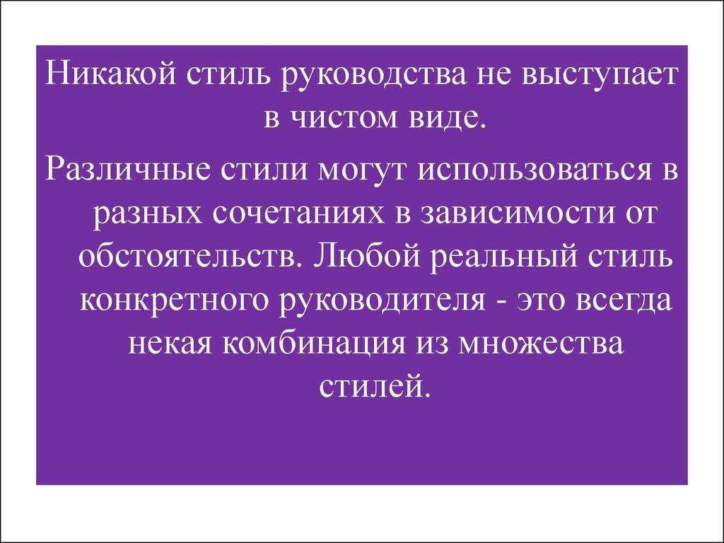 Стиль руководства - это совокупность своеобразныхприемов управления, манера повседневного поведения