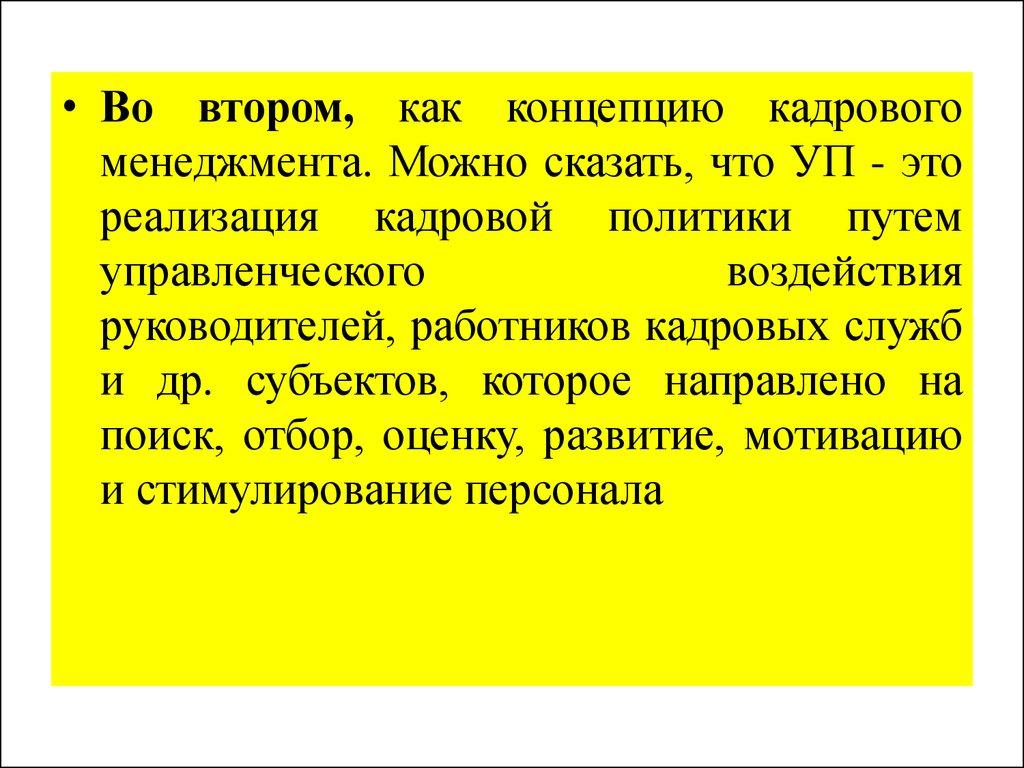 • Во втором, как концепцию кадровогоменеджмента. Можно сказать, что УП - это