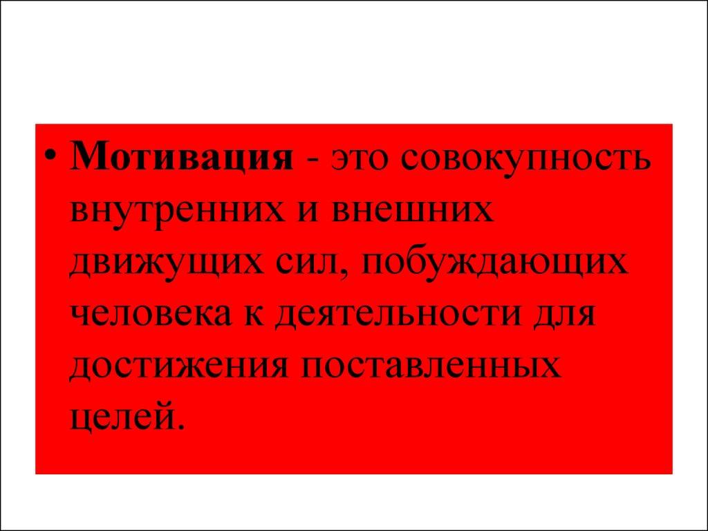 • Мотивация - это совокупностьвнутренних и внешних