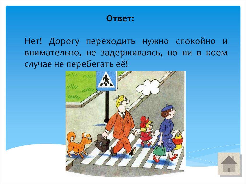 Ответ:Нет! Дорогу переходить нужно спокойно и