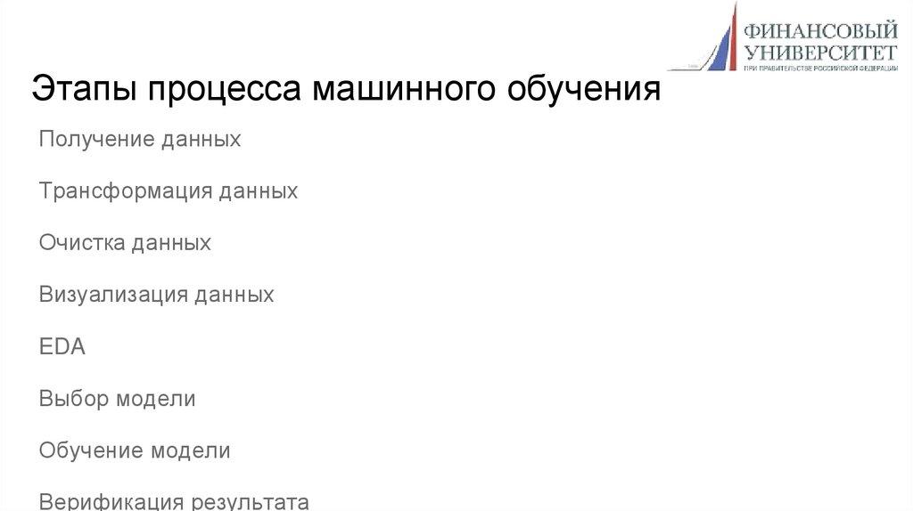 Этапы процесса машинного обученияПолучение данных