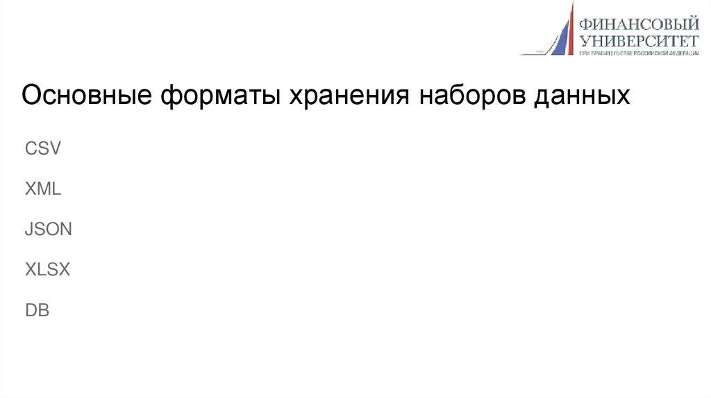 Основные форматы хранения наборов данныхCSV