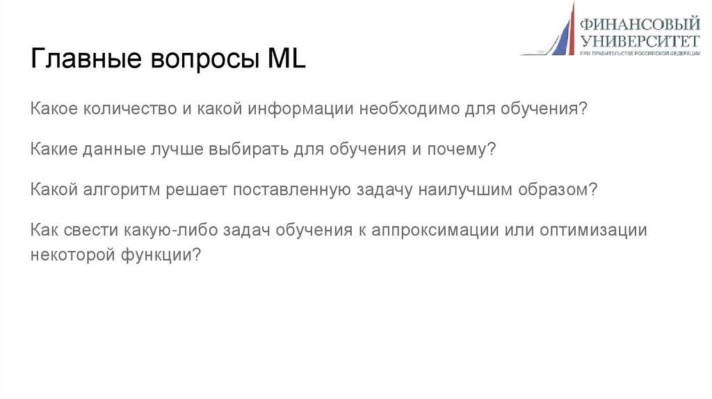 Главные вопросы MLКакое количество и какой информации необходимо для обучения?
