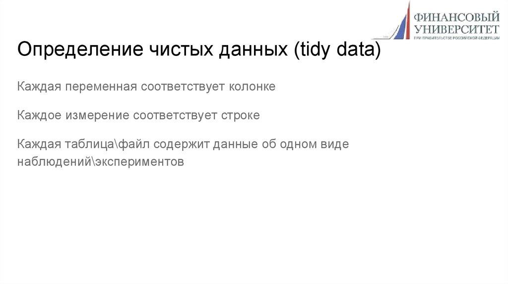 Определение чистых данных (tidy data)Каждая переменная соответствует колонке