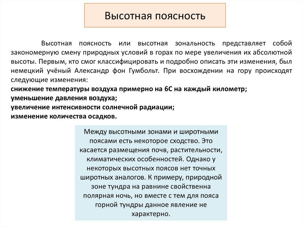 Высотная поясностьВысотная поясность или высотная зональность представляет собой