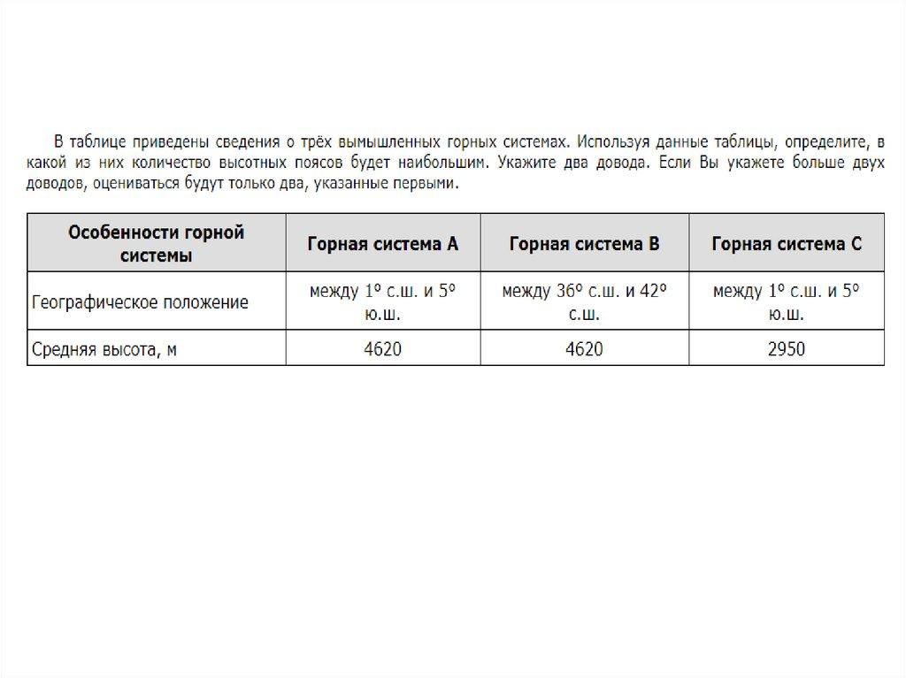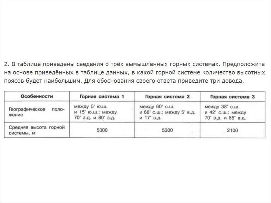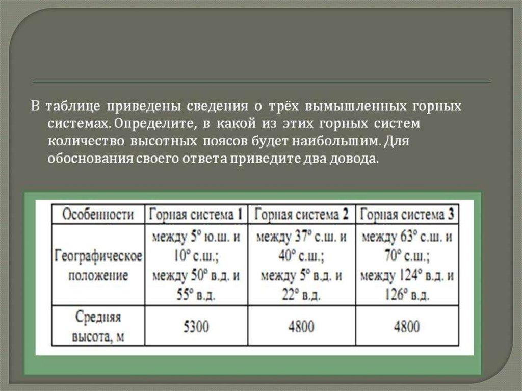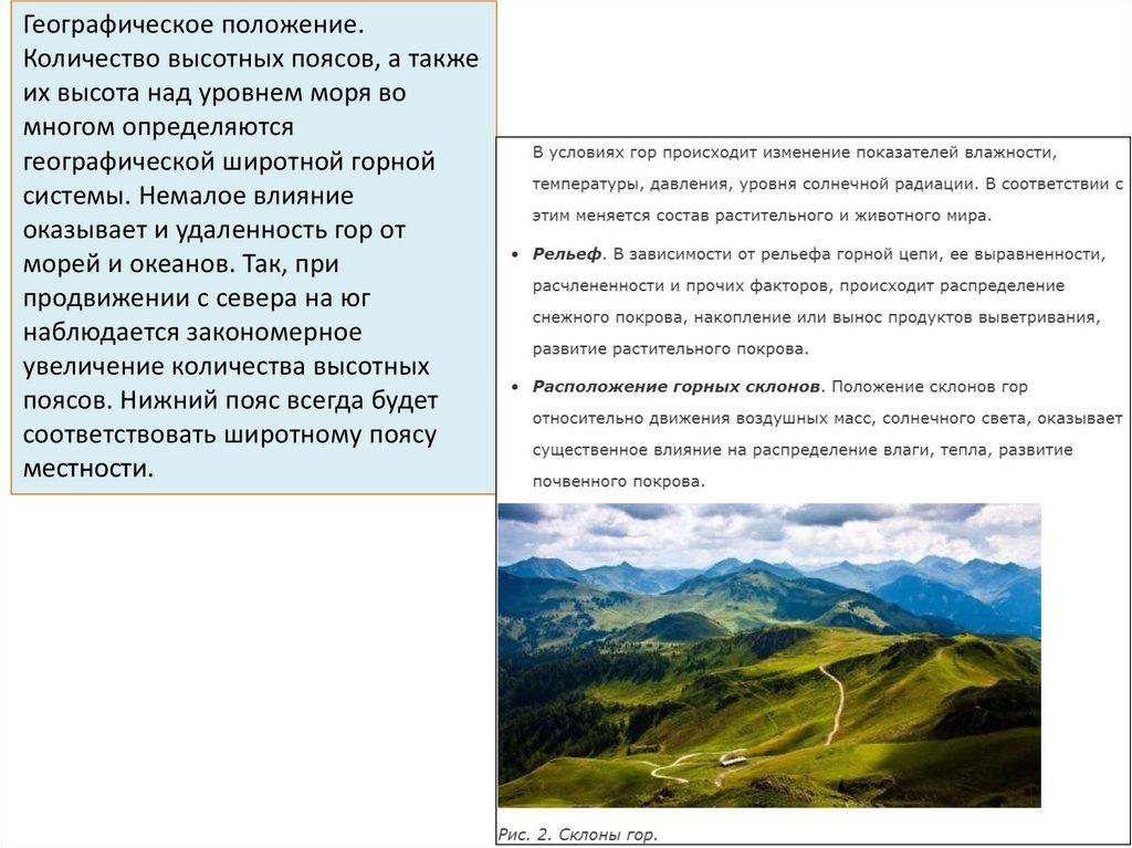 Географическое положение.Количество высотных поясов, а также
