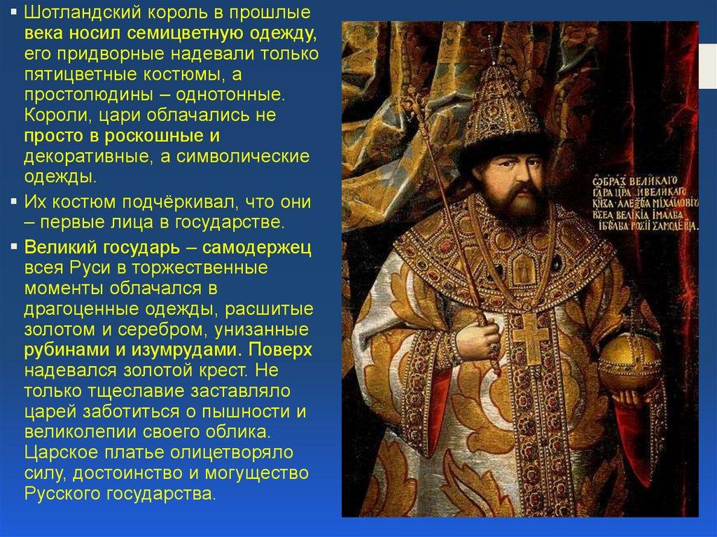 Шотландский король в прошлыевека носил семицветную одежду,