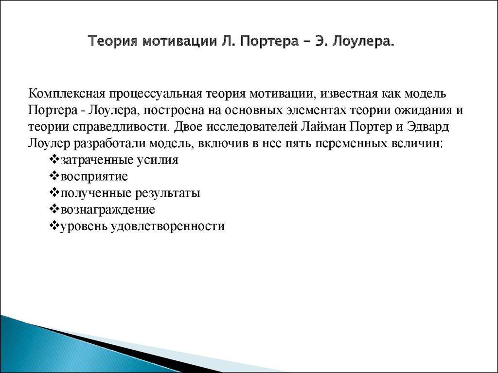 Теория мотивации Л. Портера - Э. Лоулера.Комплексная процессуальная теория мотивации, известная как модель