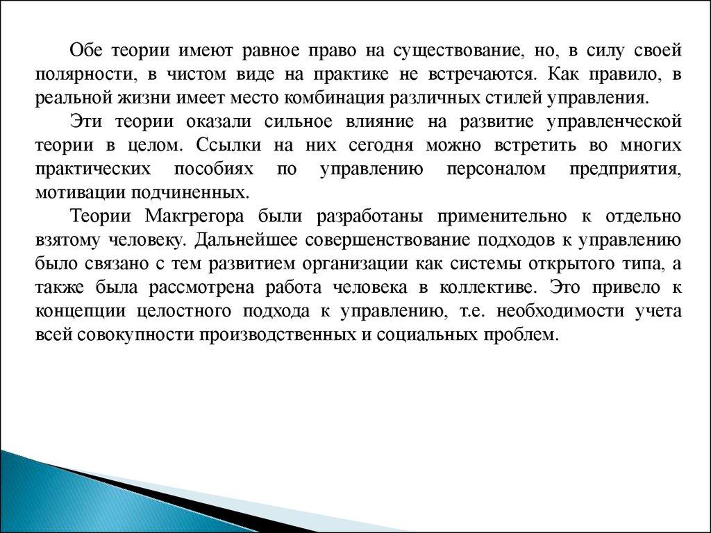Эти теории оказали сильное влияние на развитие управленческой