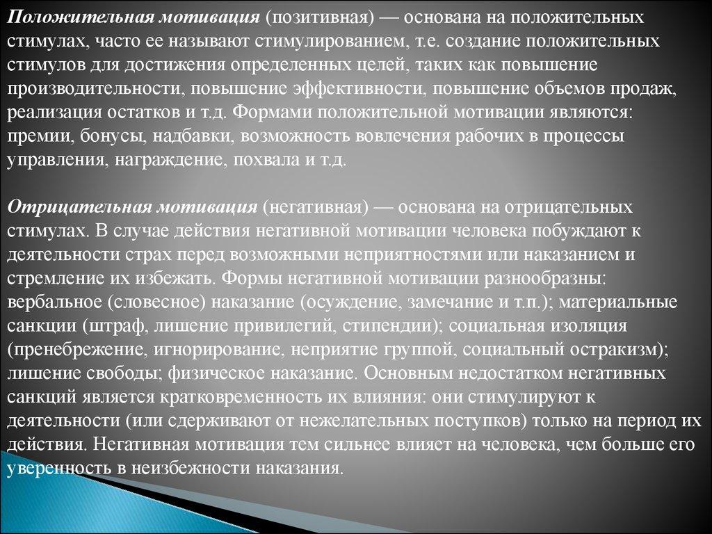 стимулах. В случае действия негативной мотивации человека побуждают к