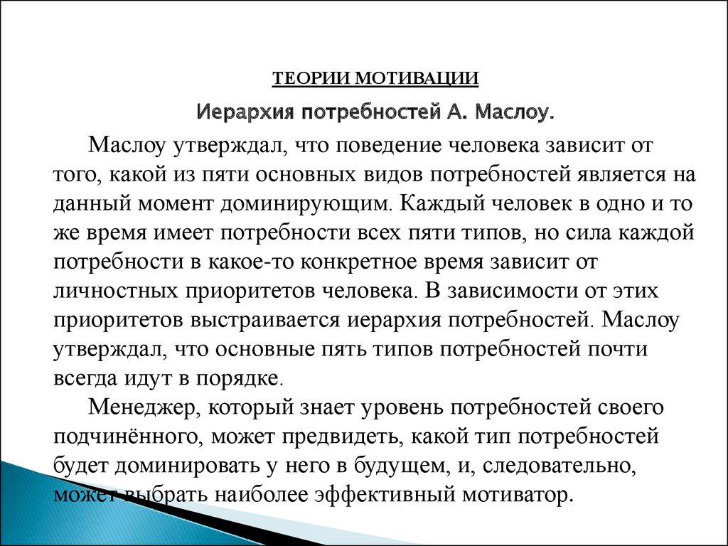 Маслоу утверждал, что поведение человека зависит от