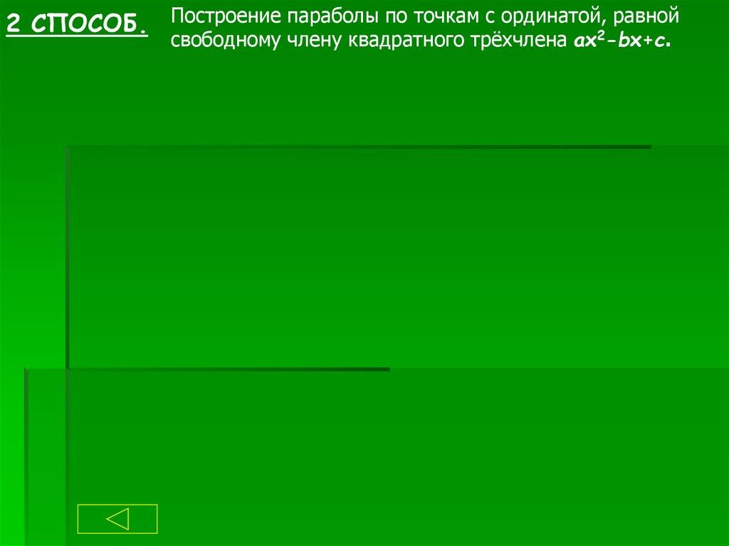 2 СПОСОБ. Построение параболы по точкам с ординатой,2 равнойсвободному члену квадратного трёхчлена ax -bx+c.