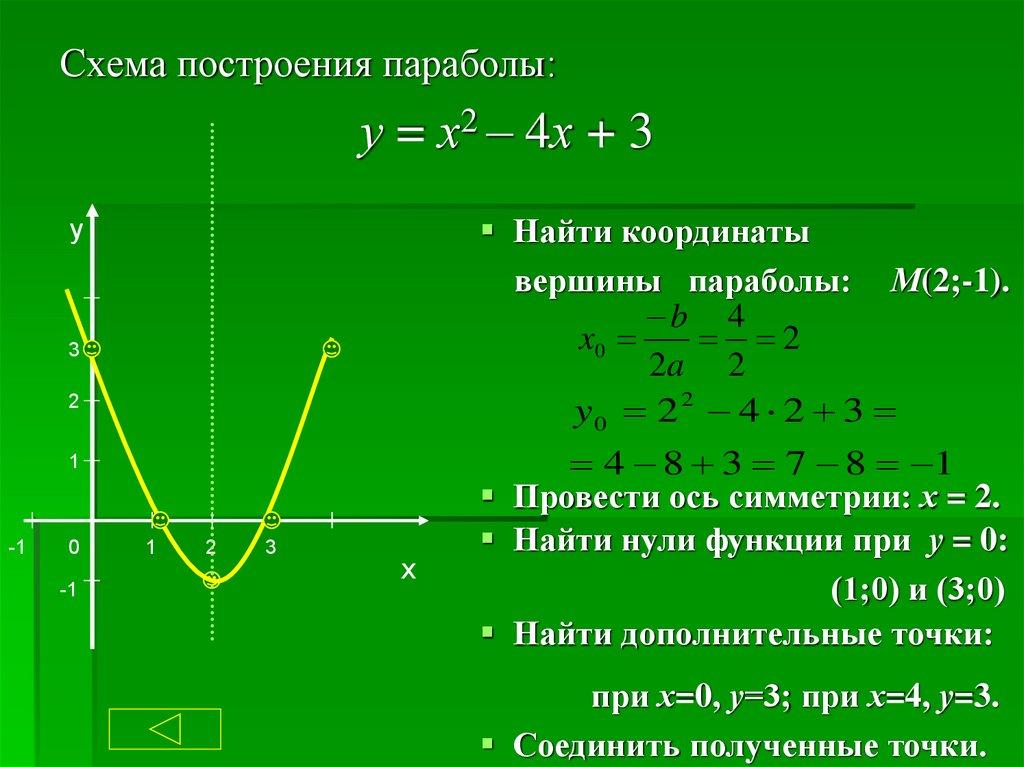 Схема построения параболы:у = х2 – 4х + 3