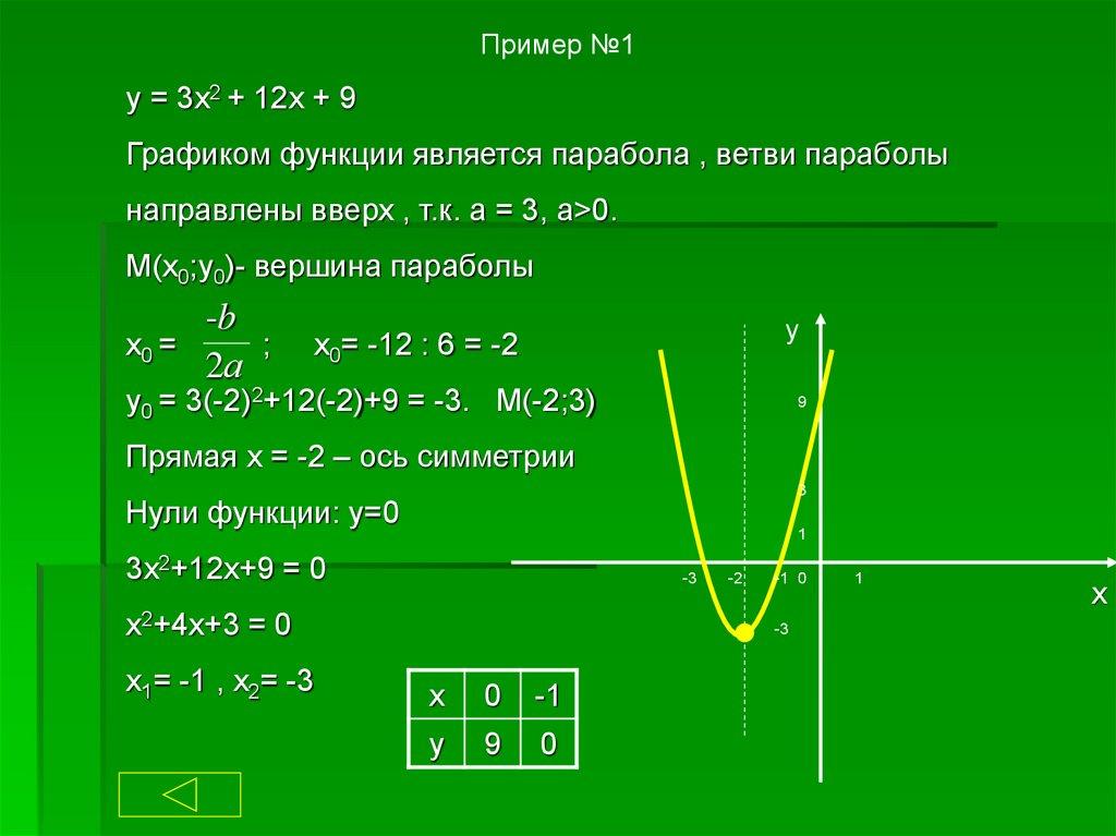 Пример №1y = 3x2 + 12x + 9