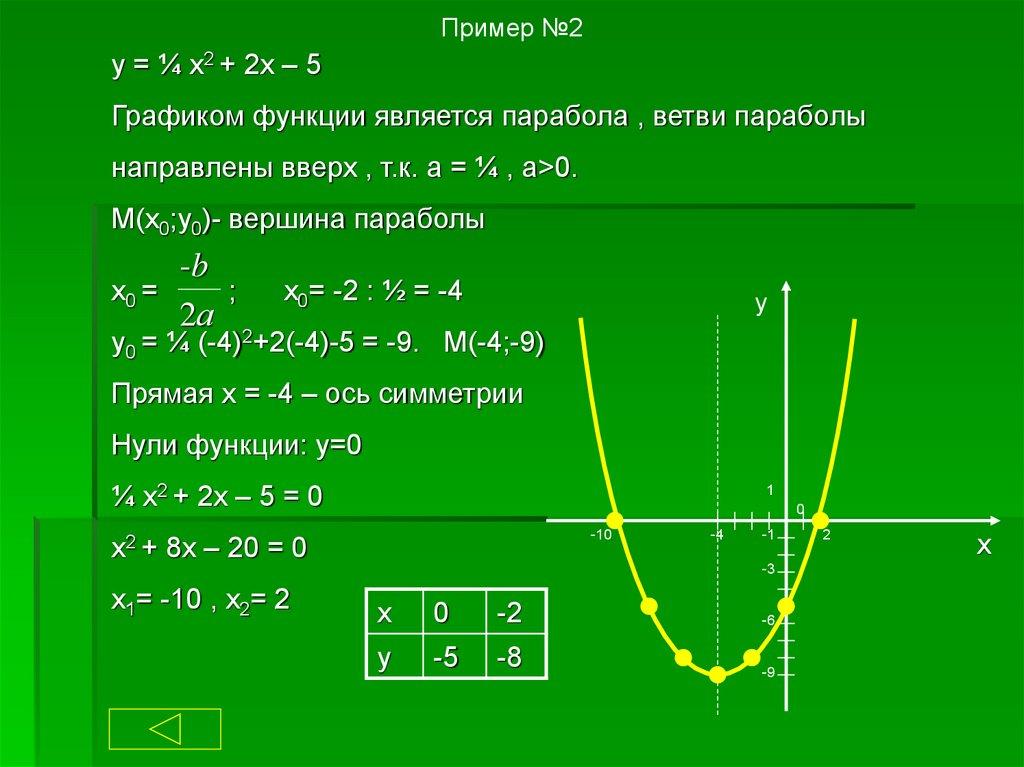 Пример №2y = ¼ x2 + 2x – 5