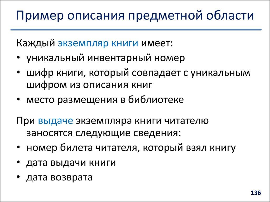 предметной области, их атрибутов и закономерностей, их