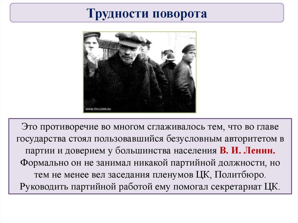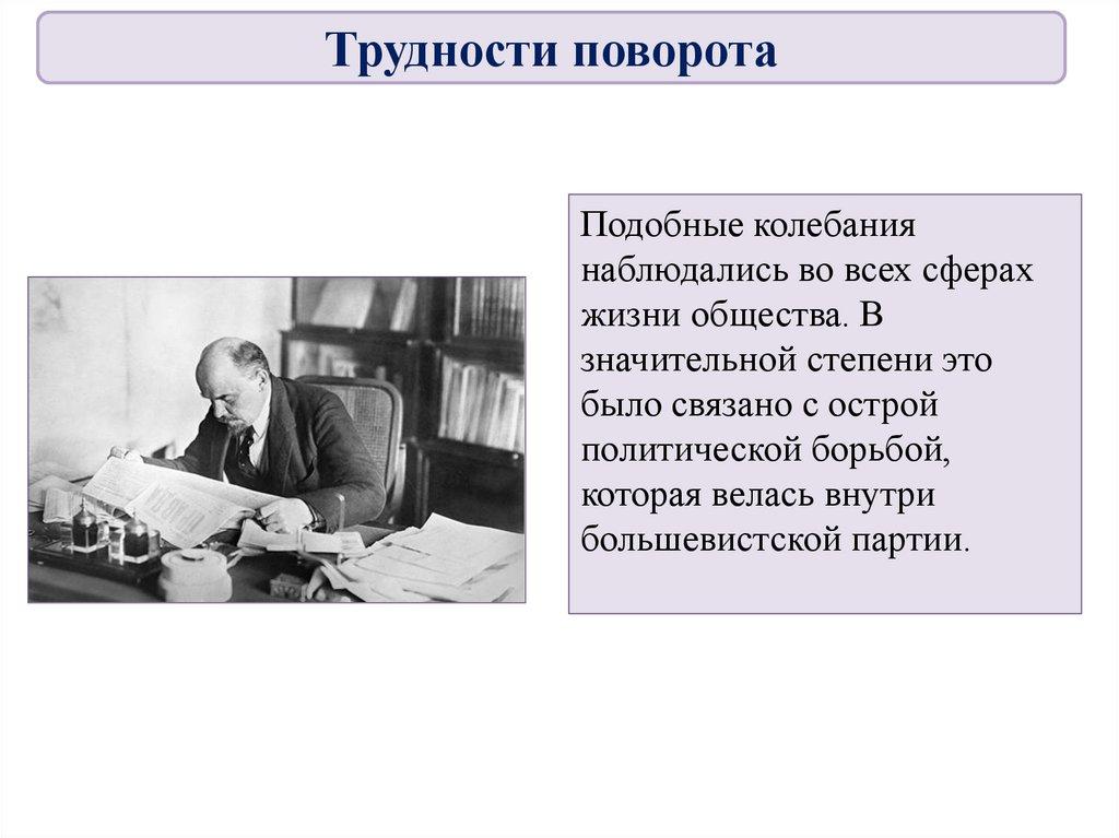 1. Трудности поворота.2. Болезнь В. И. Ленина и борьба за власть