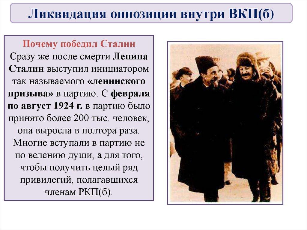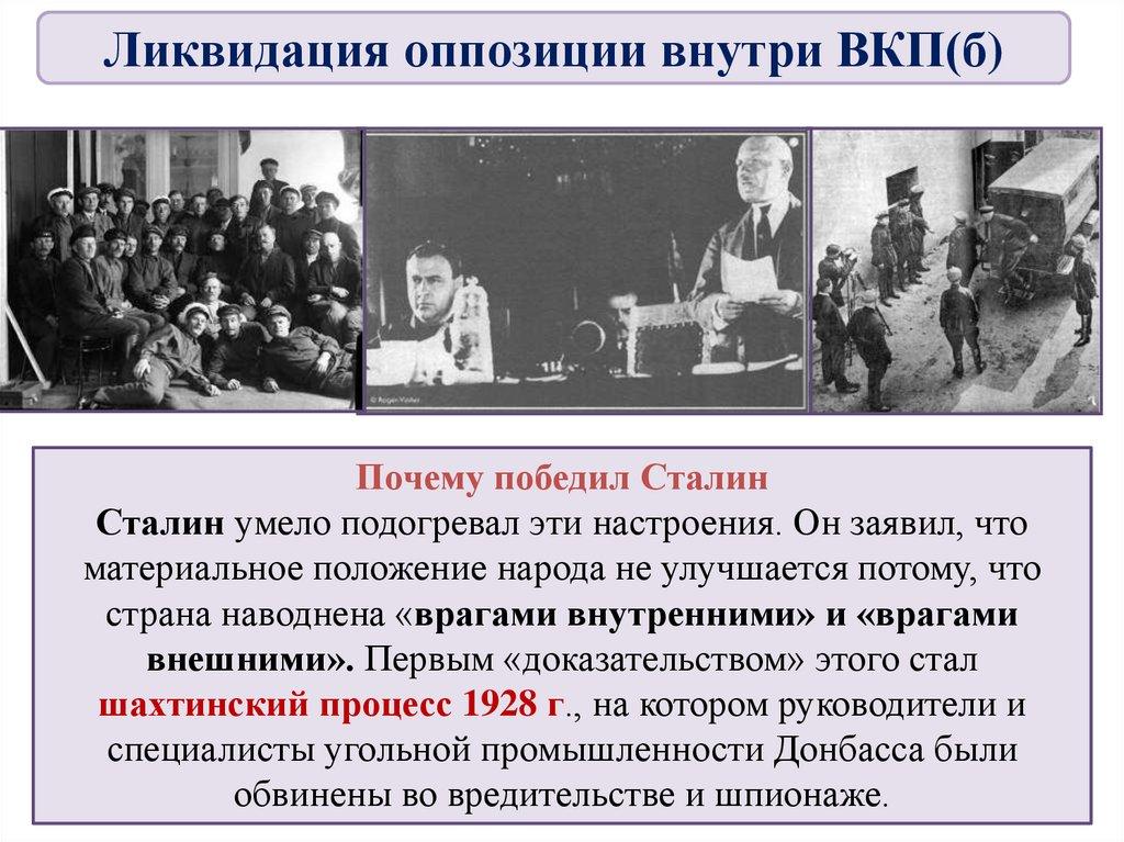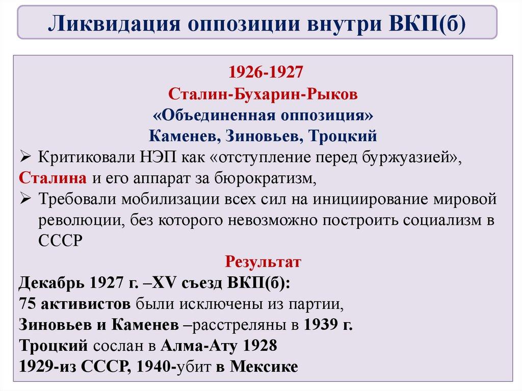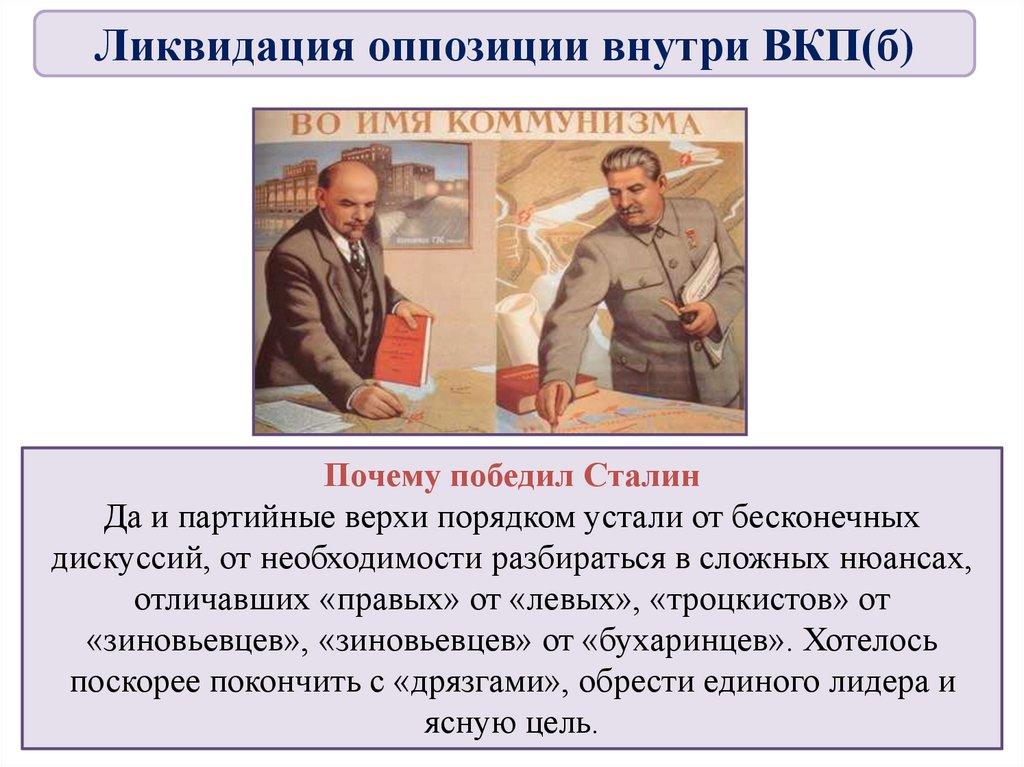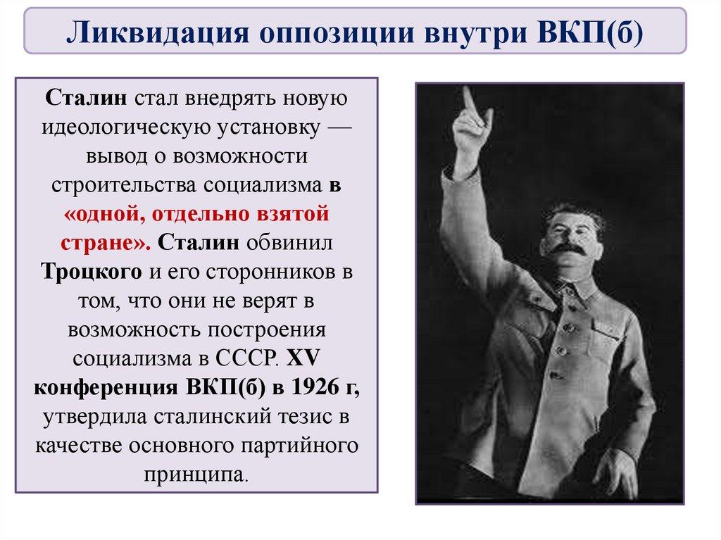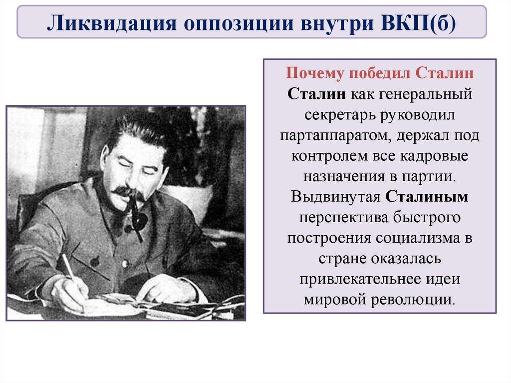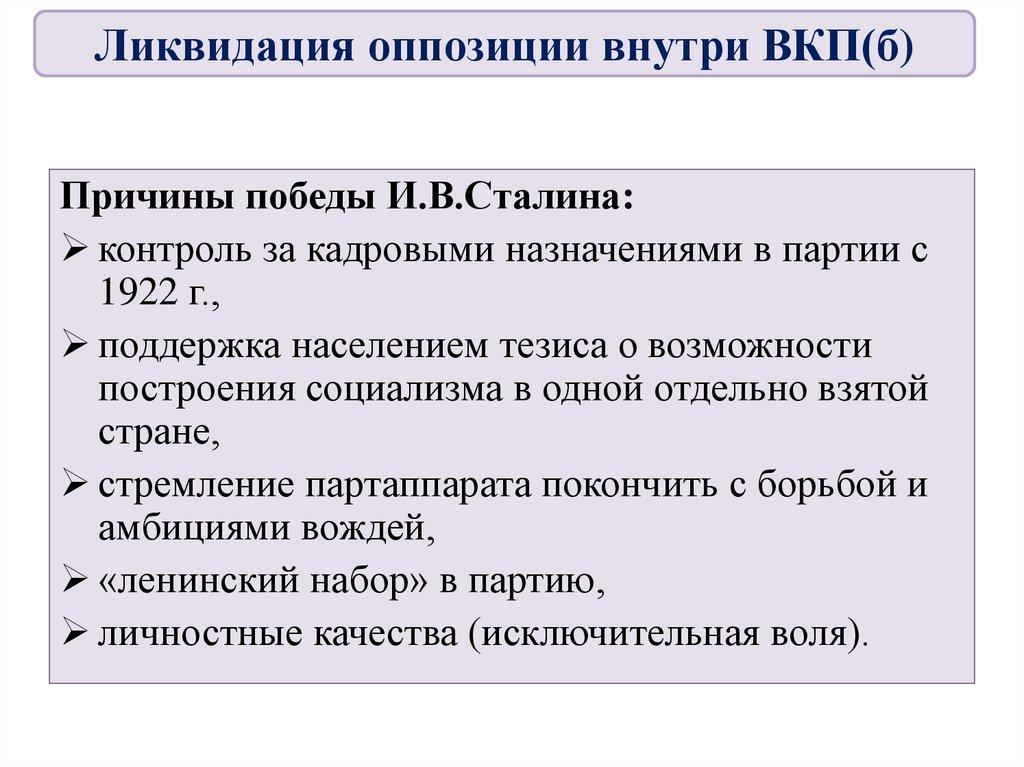 Ликвидация оппозиции внутри ВКП(б)Причины победы И.В.Сталина: