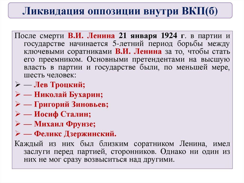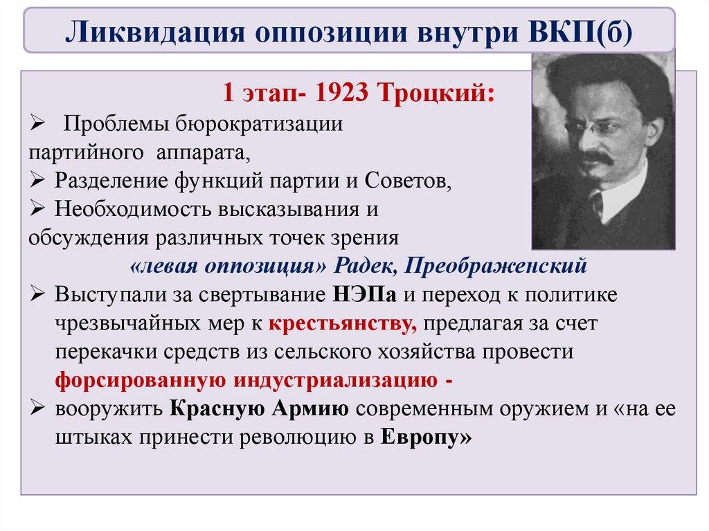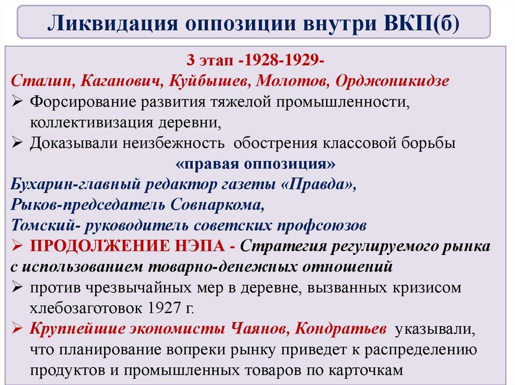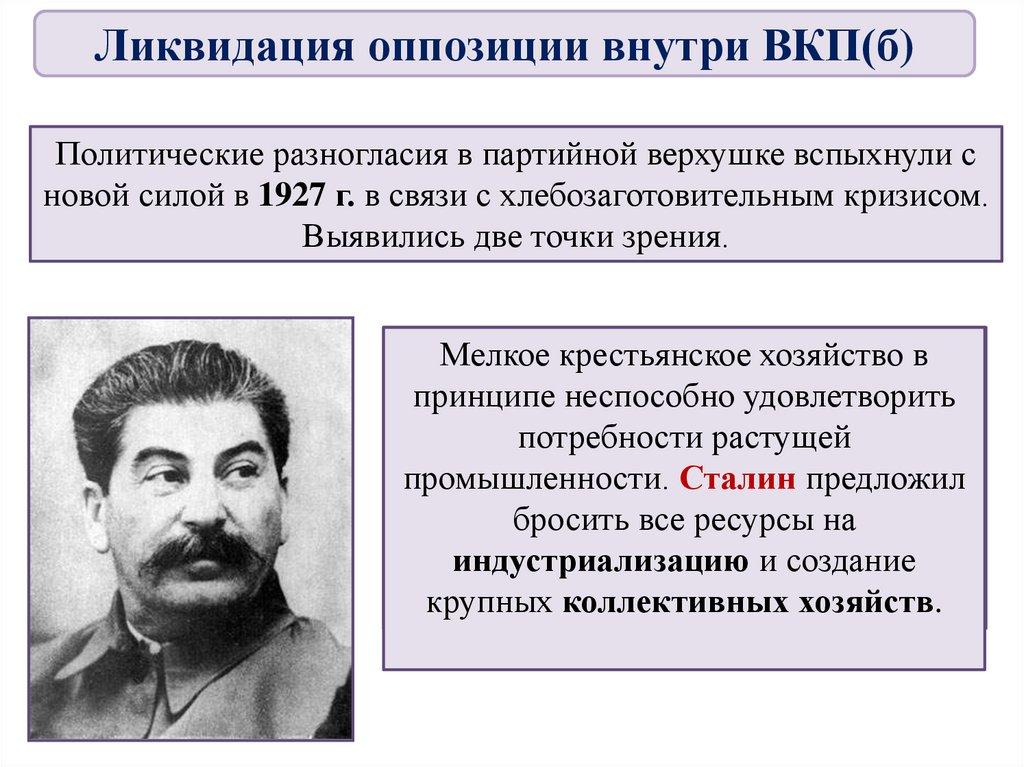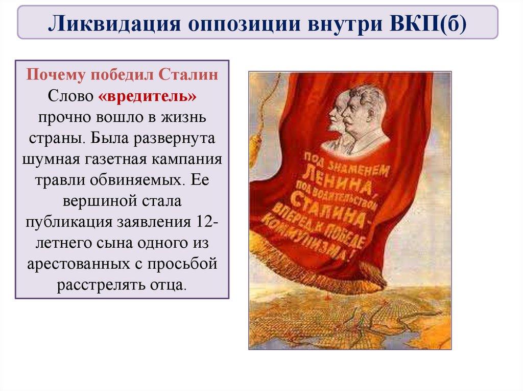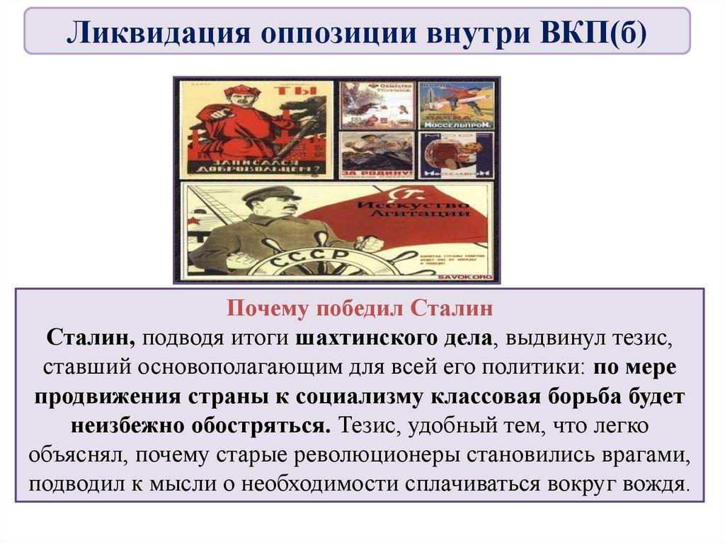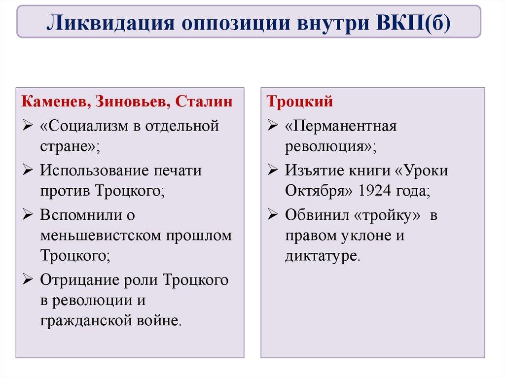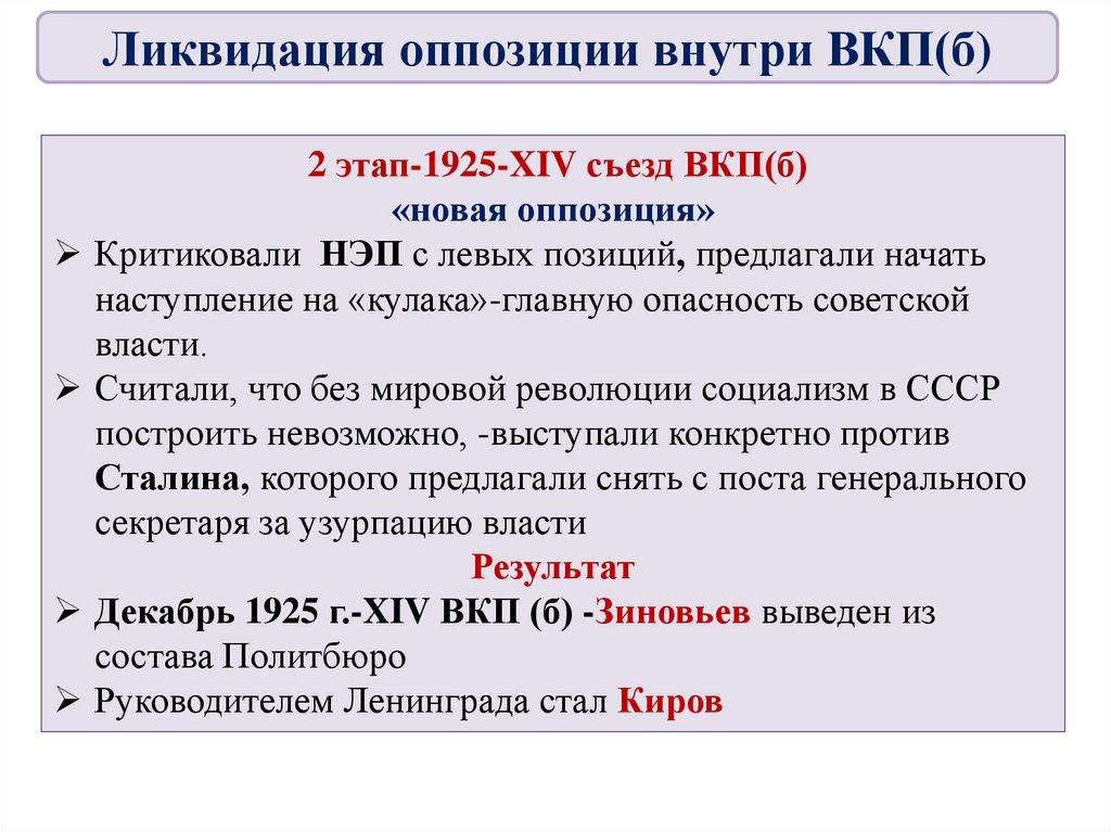 Ликвидация оппозиции внутри ВКП(б)Причины победы И.В.Сталина:
