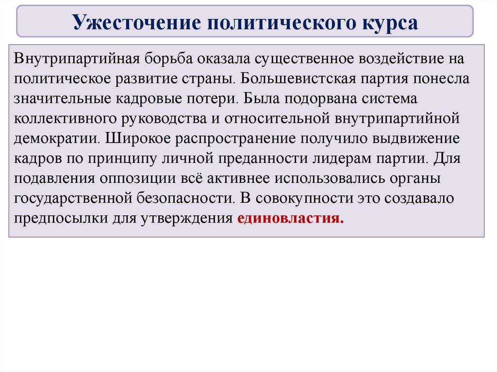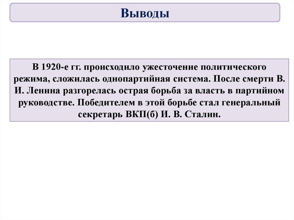 ВыводыВ 1920-е гг. происходило ужесточение политического