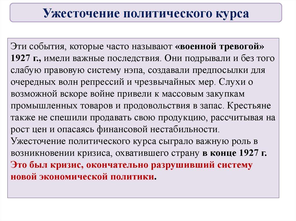 Ужесточение политического курсаЭти события, которые часто называют «военной тревогой»