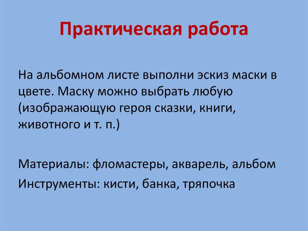 Практическая работаНа альбомном листе выполни эскиз маски в