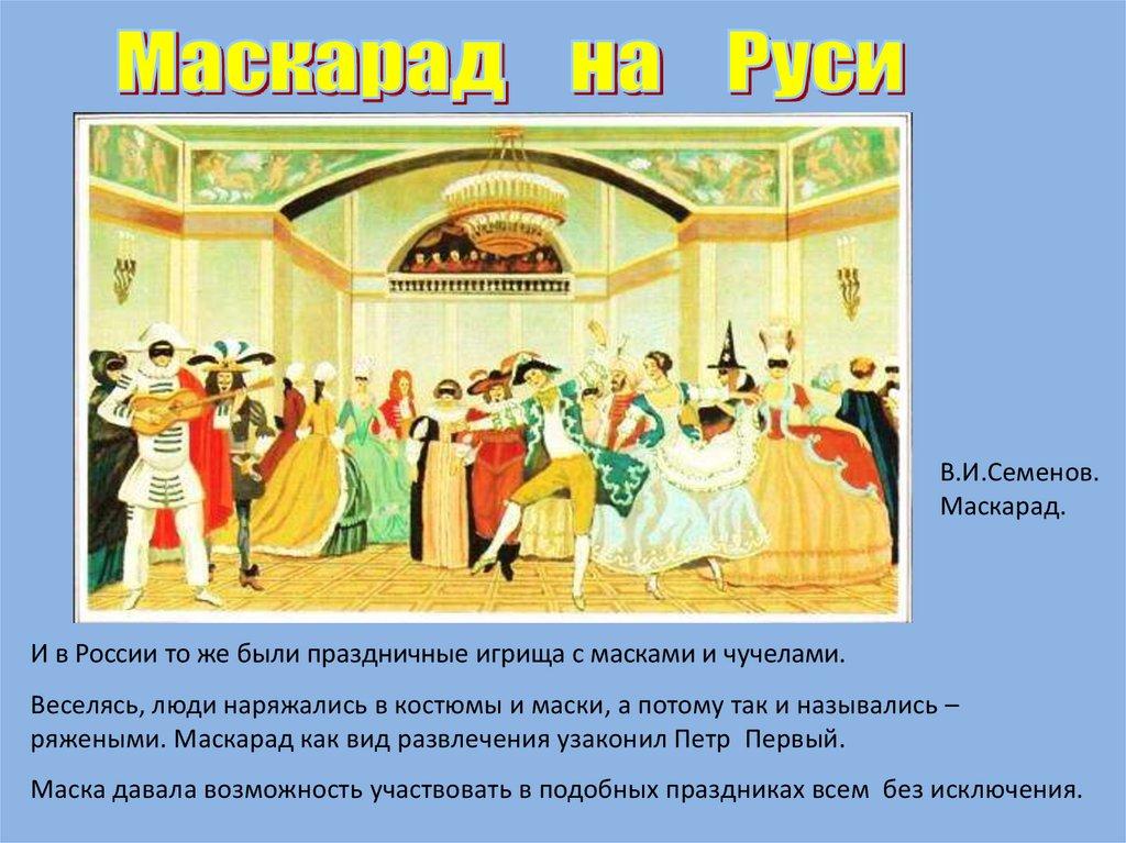 ряжеными. Маскарад как вид развлечения узаконил Петр Первый.