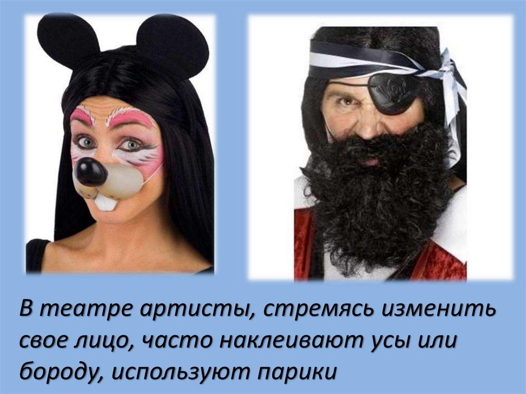 В театре артисты, стремясь изменитьсвое лицо, часто наклеивают усы или