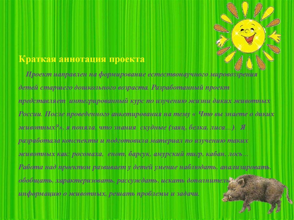 Краткая аннотация проектаПроект направлен на формирование естествонаучного мировоззрения