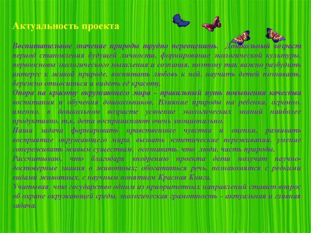 Актуальность проектаВоспитательное значение природы трудно переоценить. Дошкольный возраст