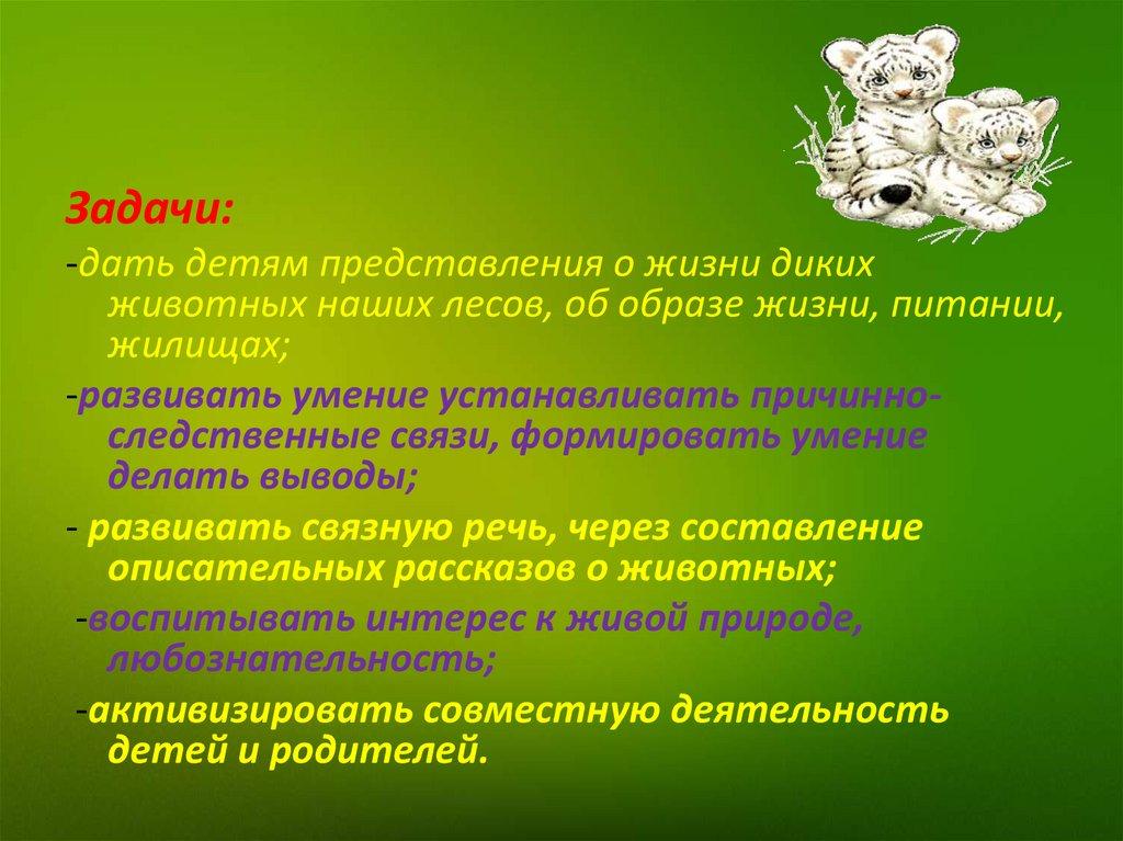 •Создание картотек «Загадки о диких животных», «Стихотворения о диких животных»