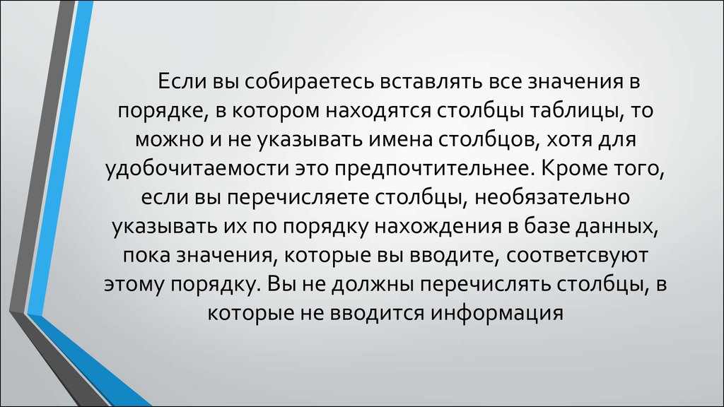этому порядку. Вы не должны перечислять столбцы, в