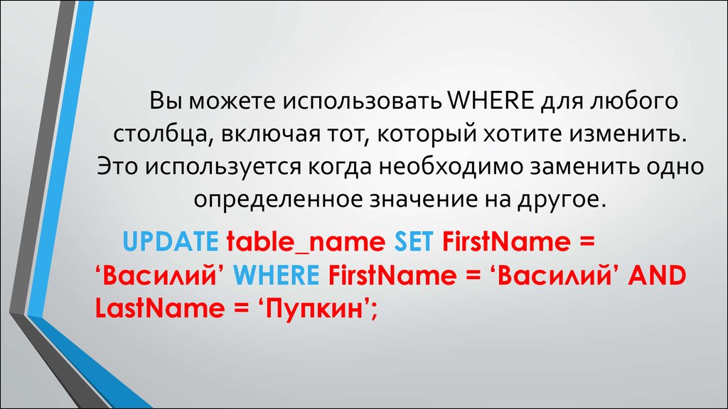 ‘Василий’ WHERE FirstName = ‘Василий’ AND