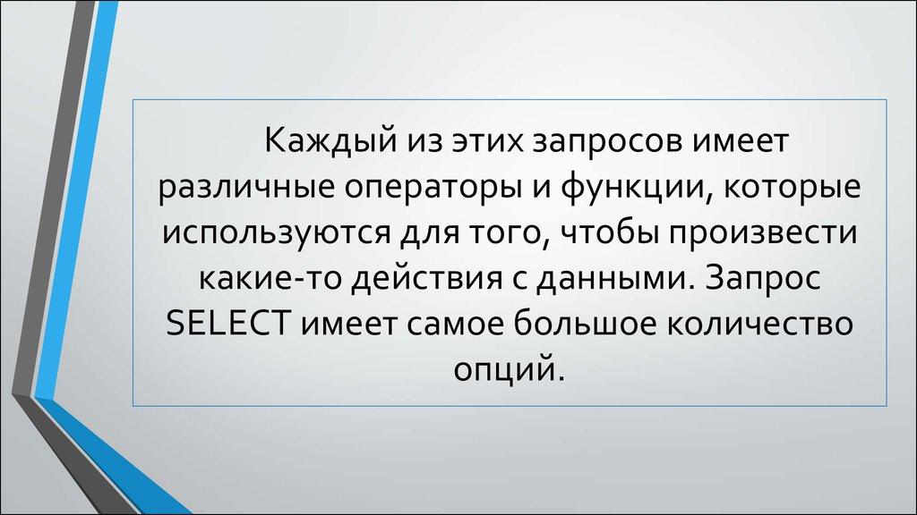 Каждый из этих запросов имеетразличные операторы и функции, которые