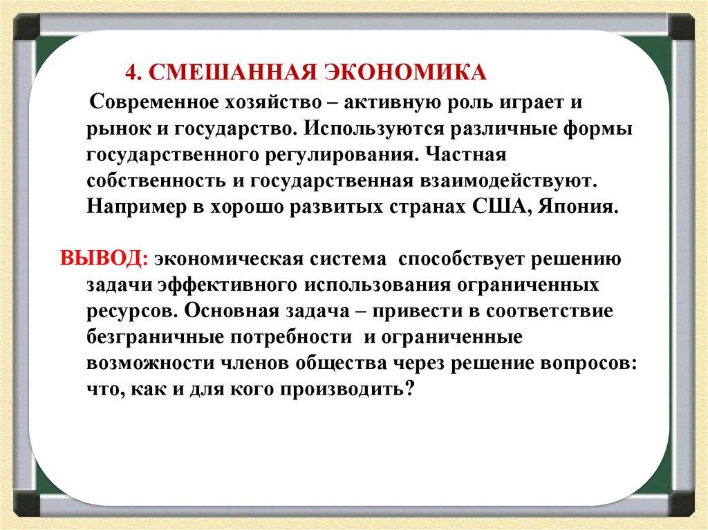 4. СМЕШАННАЯ ЭКОНОМИКАСовременное хозяйство – активную роль играет и