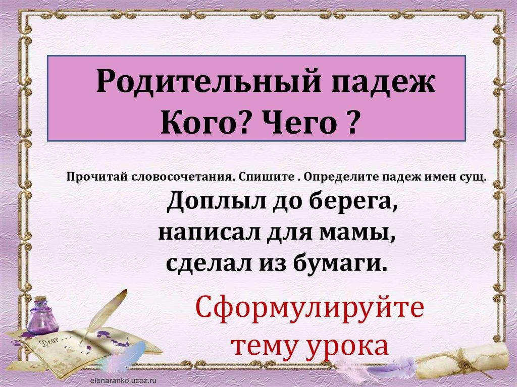 Прочитай словосочетания. Спишите . Определите падеж имен сущ.