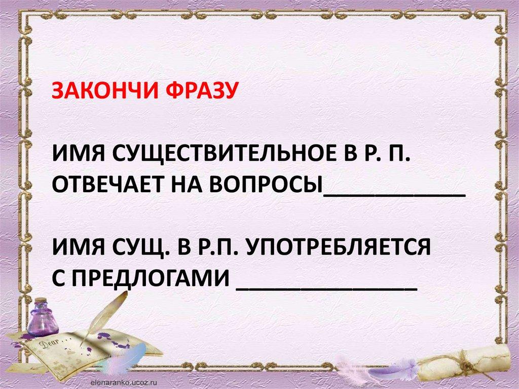 ЗАКОНЧИ ФРАЗУИМЯ СУЩЕСТВИТЕЛЬНОЕ В Р. П.