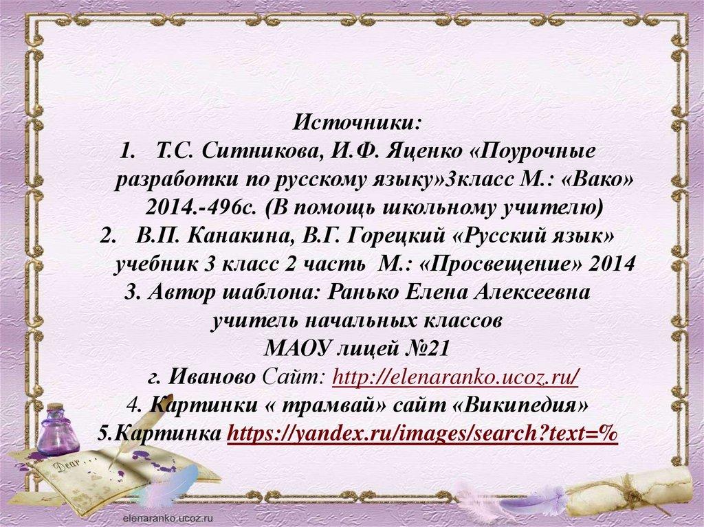 Источники:1. Т.С. Ситникова, И.Ф. Яценко «Поурочные