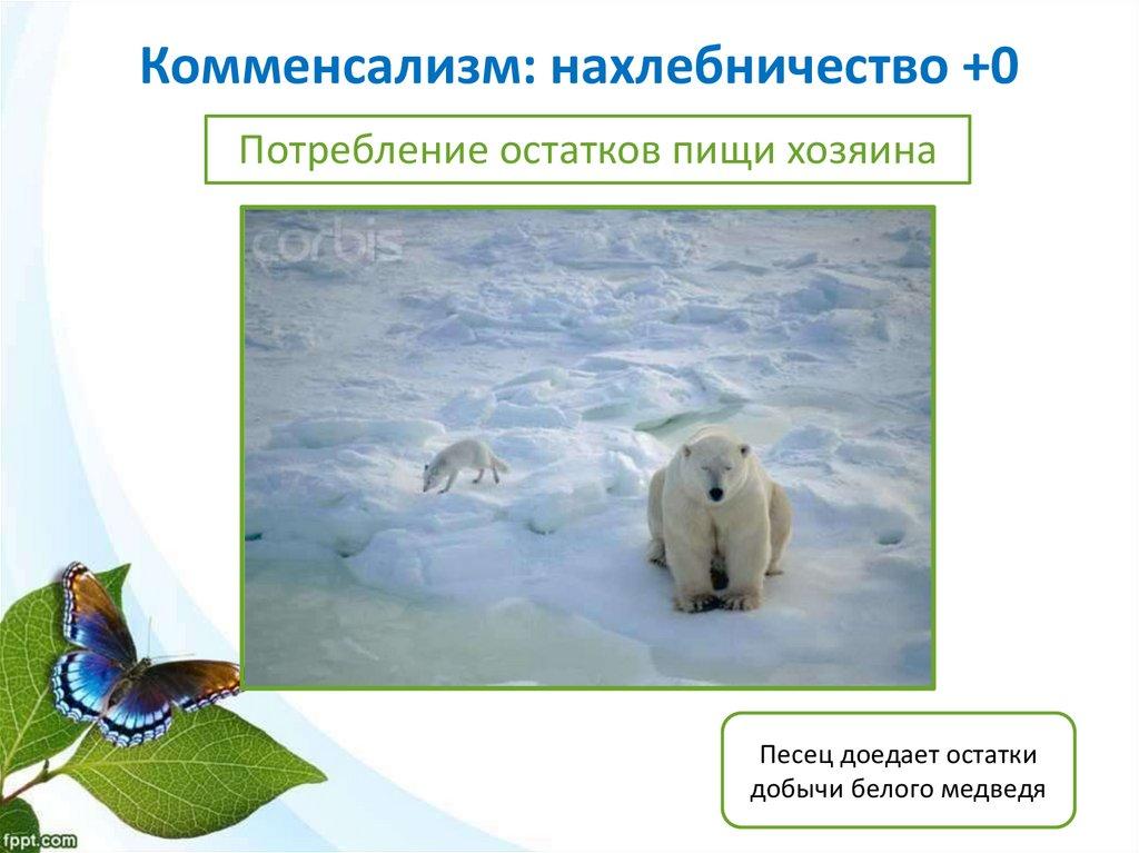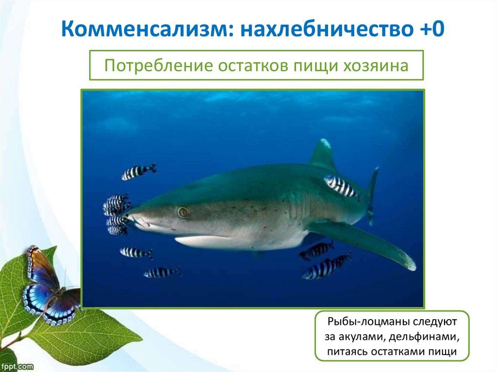 Комменсализм: нахлебничество +0Потребление остатков пищи хозяина