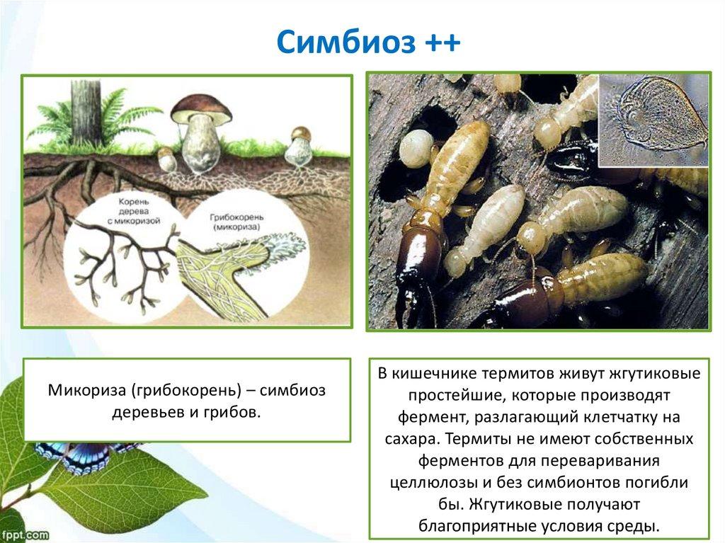 Симбиоз ++Микориза (грибокорень) – симбиоз