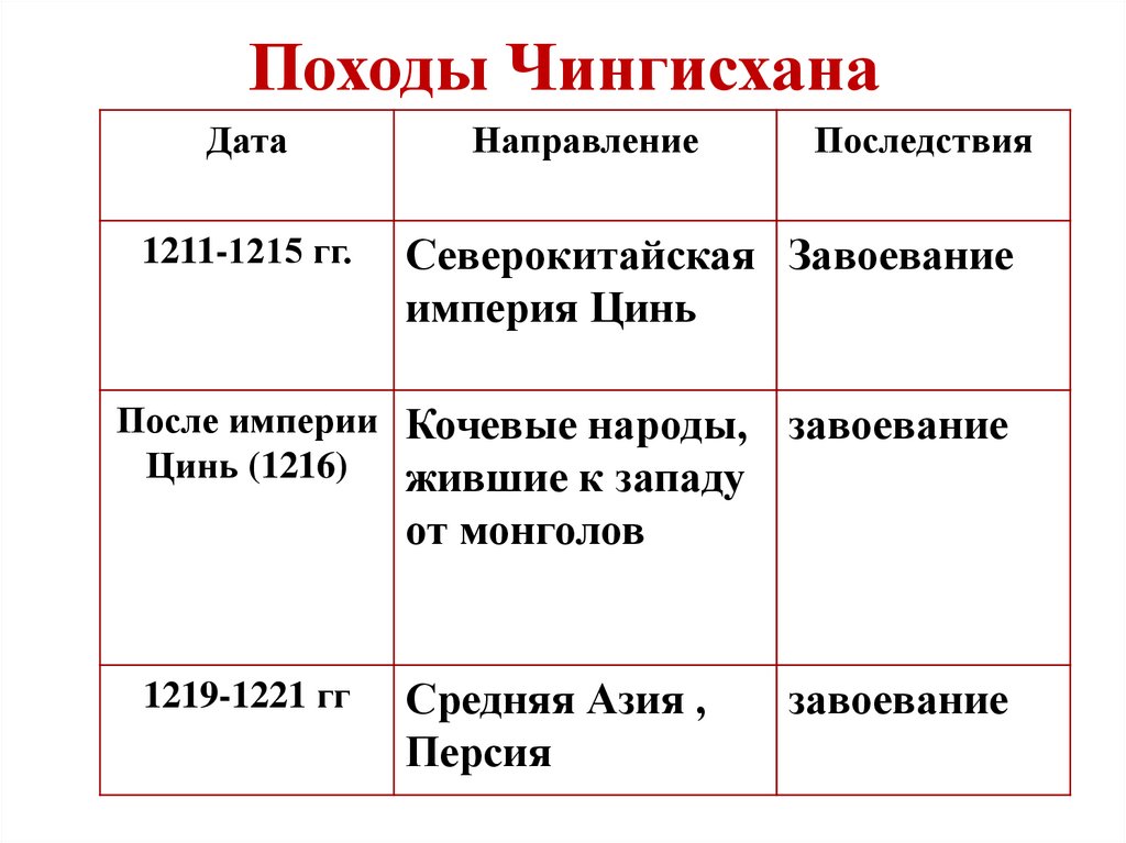 Возникновение Монгольской империи. Завоевания Чингисхана и его потомков