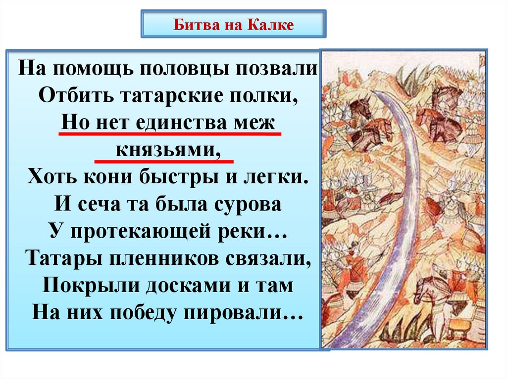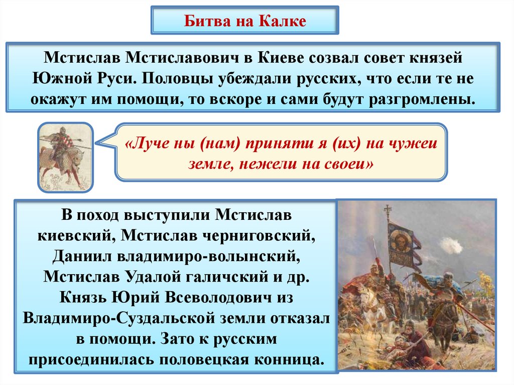 Битва на Калке«Мстислав Мстиславич повелел сначала