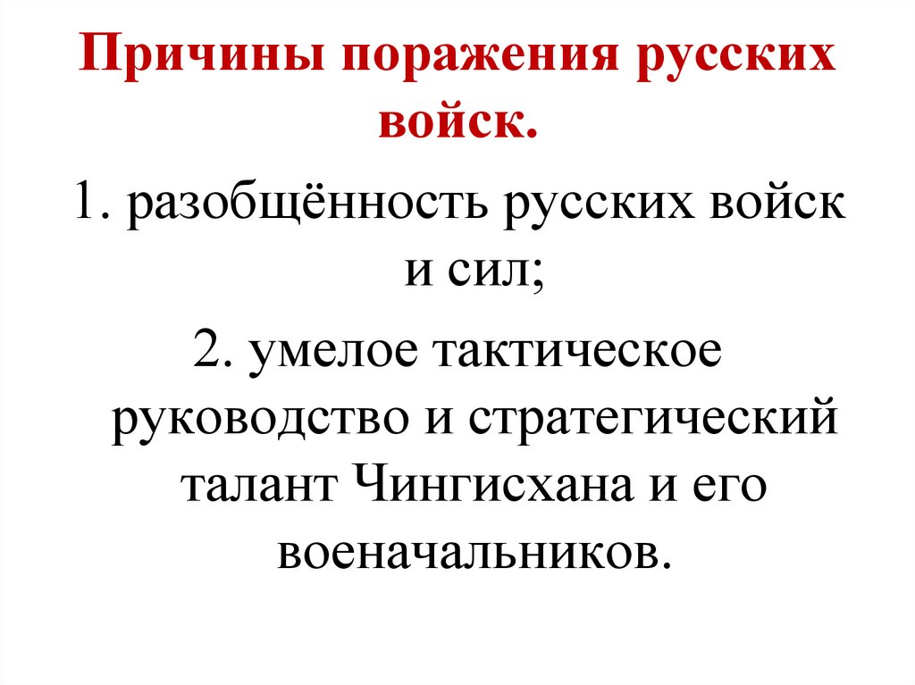 Битва на Калке, 1223г.40. Причины поражения русских войск.