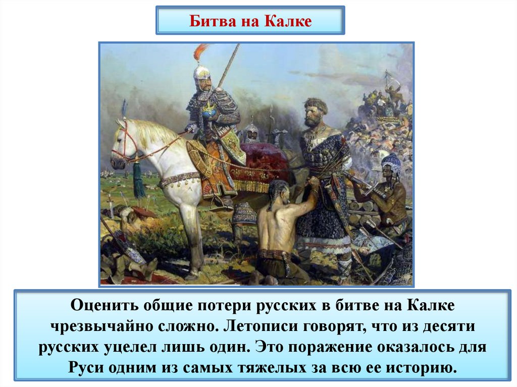 Битва на КалкеОценить общие потери русских в битве на Калке
