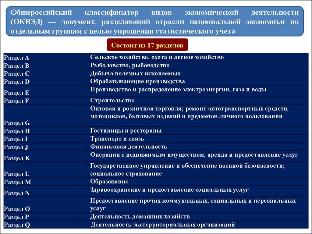 (ОКВЭД) — документ, разделяющий отрасли национальной экономики по